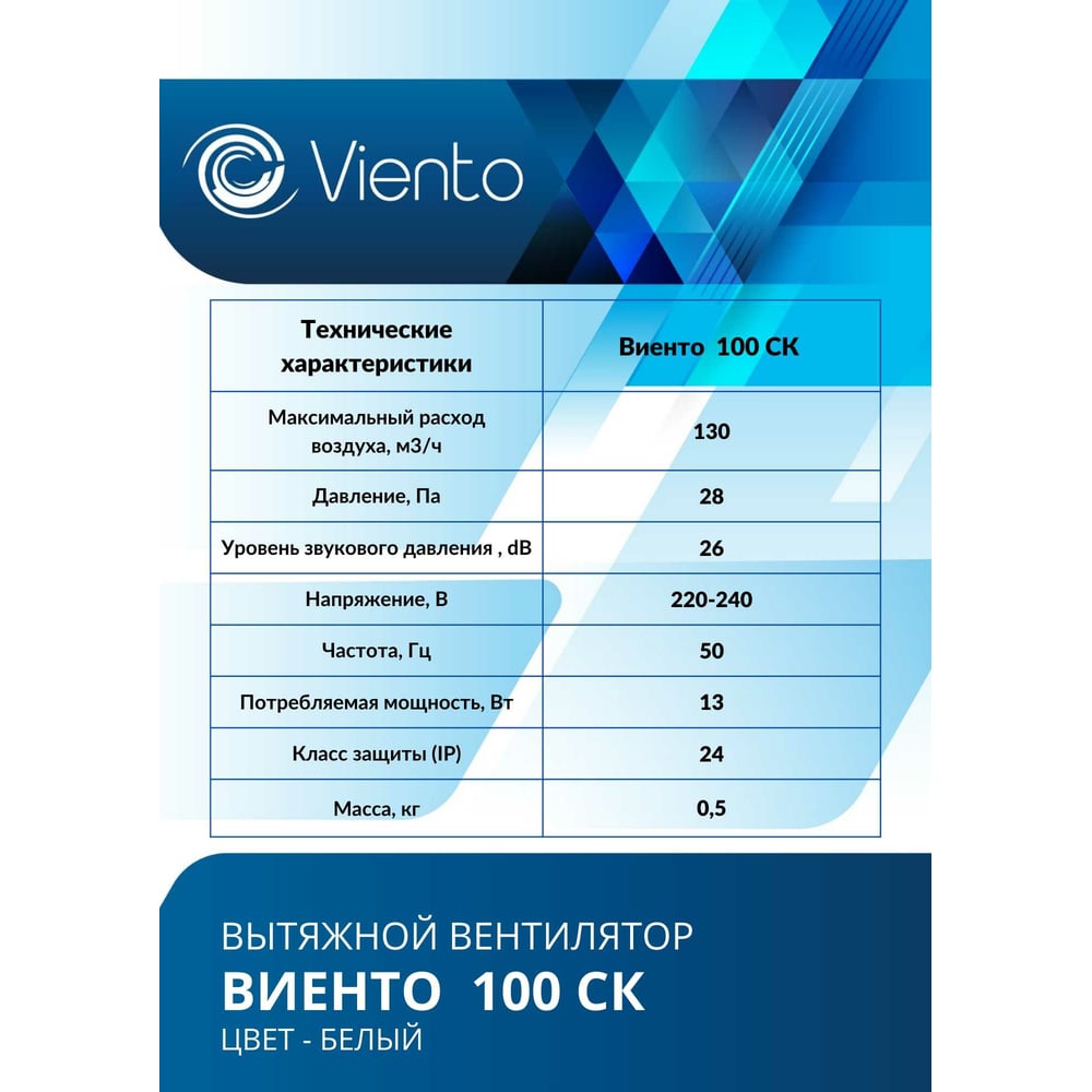 Осевой вытяжной вентилятор ВИЕНТО 100СК 100СК