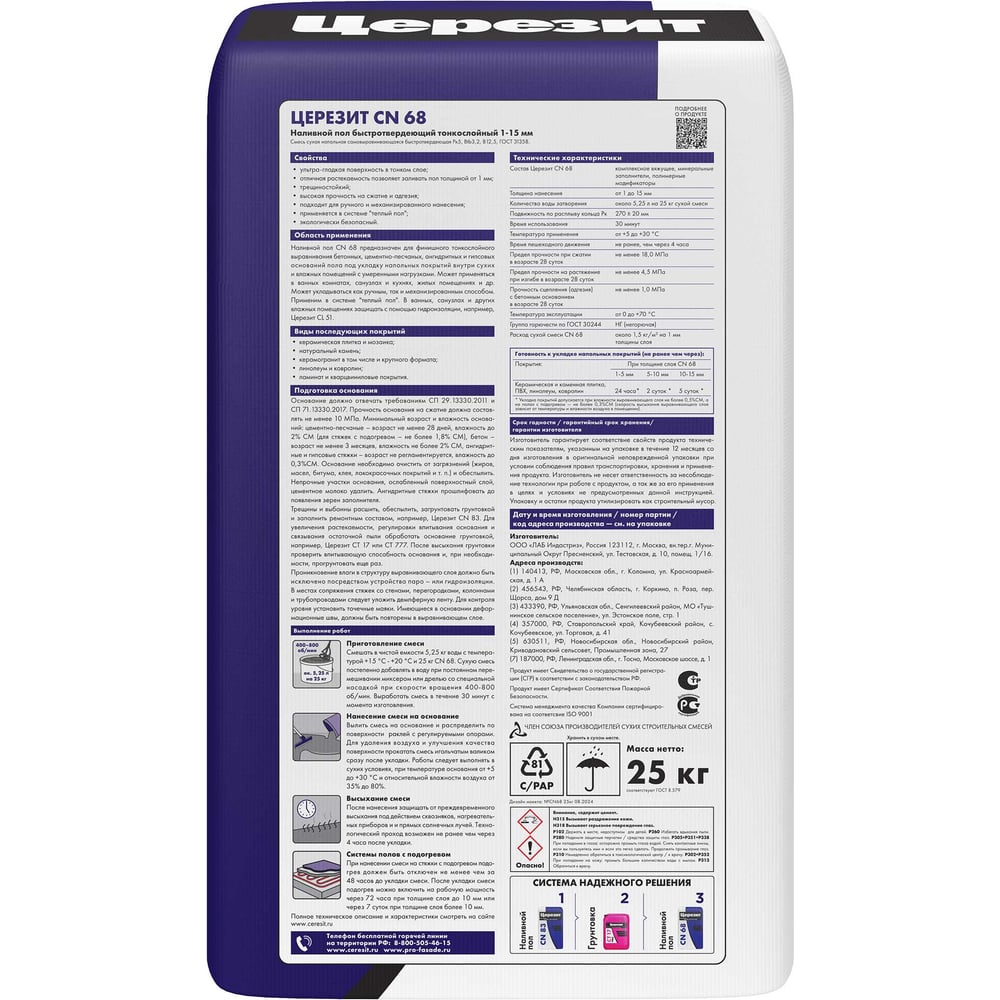 | Расход воды на 1 кг сухой смеси | 0.21 л |
