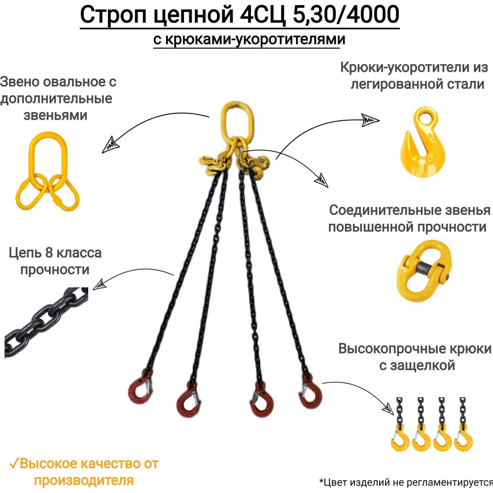Цепной четырехветвевой строп с крюками укоротителями КанТраст 4СЦ 5,3/4000 4STS5304000R