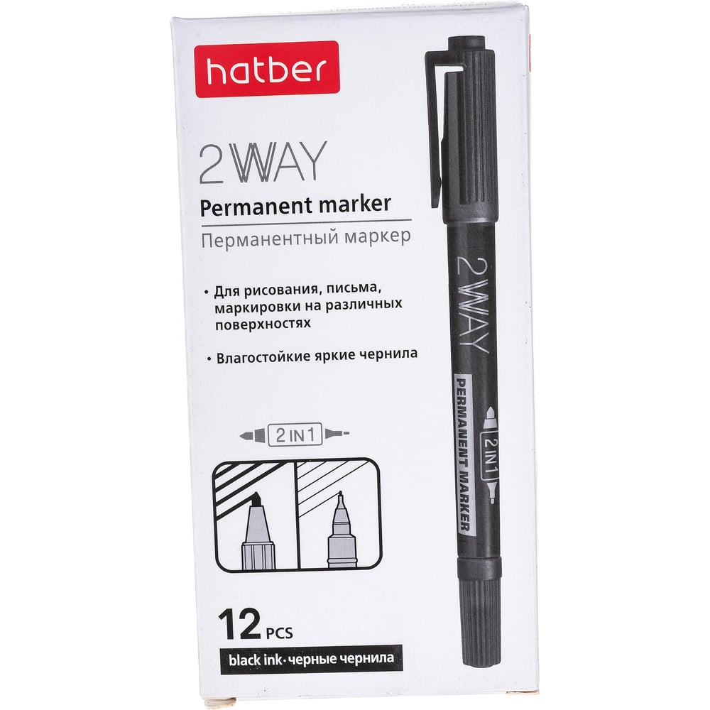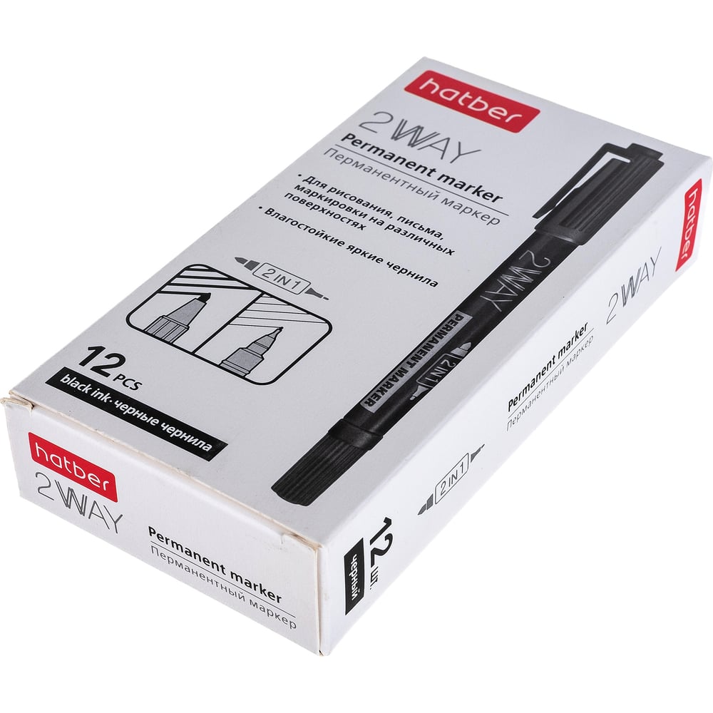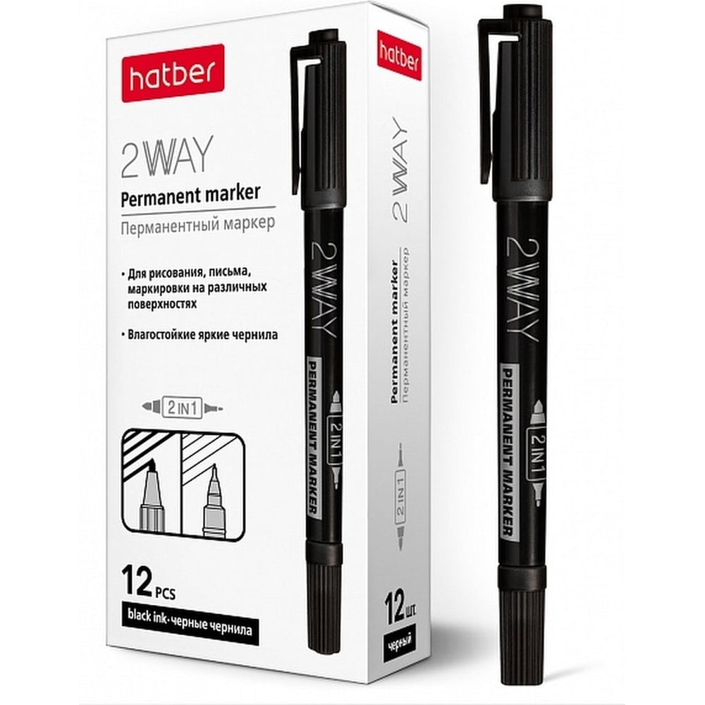 Перманентный маркер Hatber 2WAY двухсторонний 1 мм/0.5 мм закругленный, упак. 12 шт. 60847