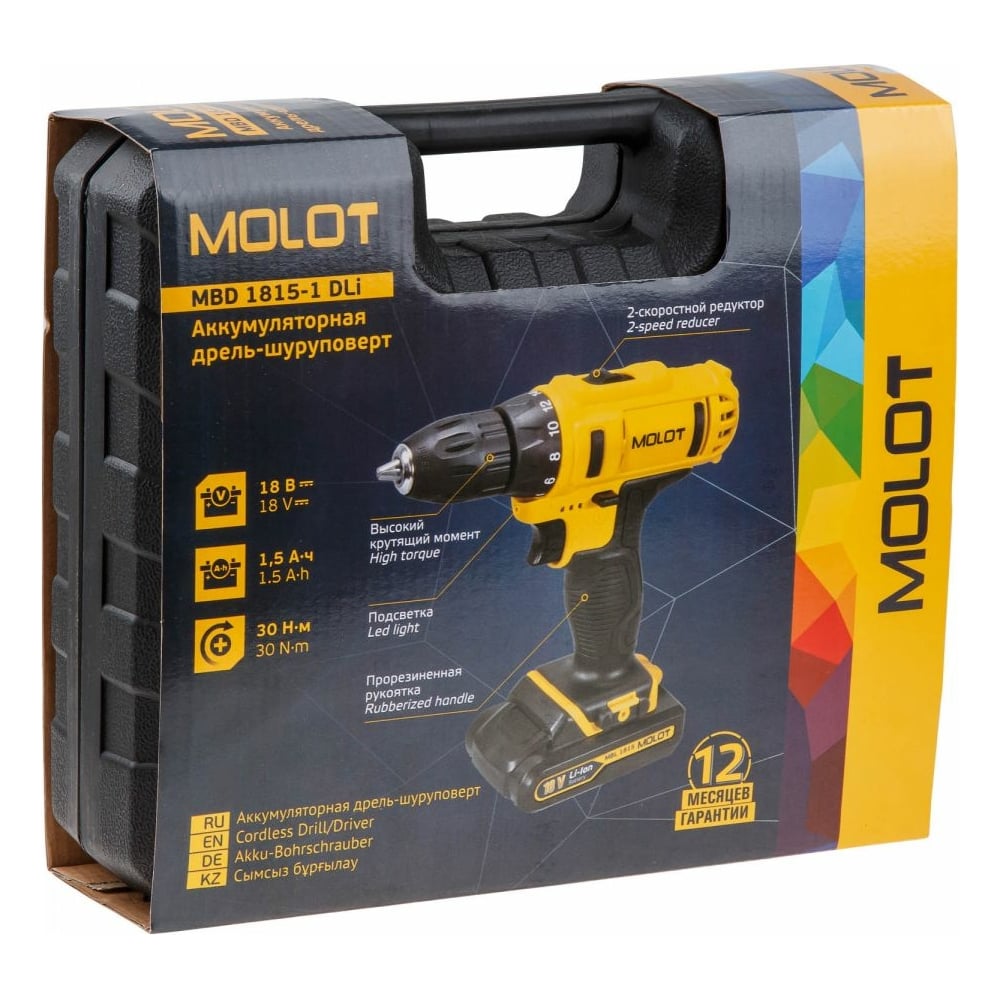 | Индикатор уровня зарядки на корпусе дрели | да |