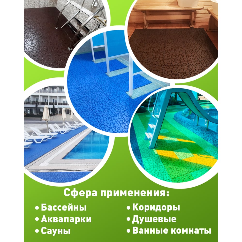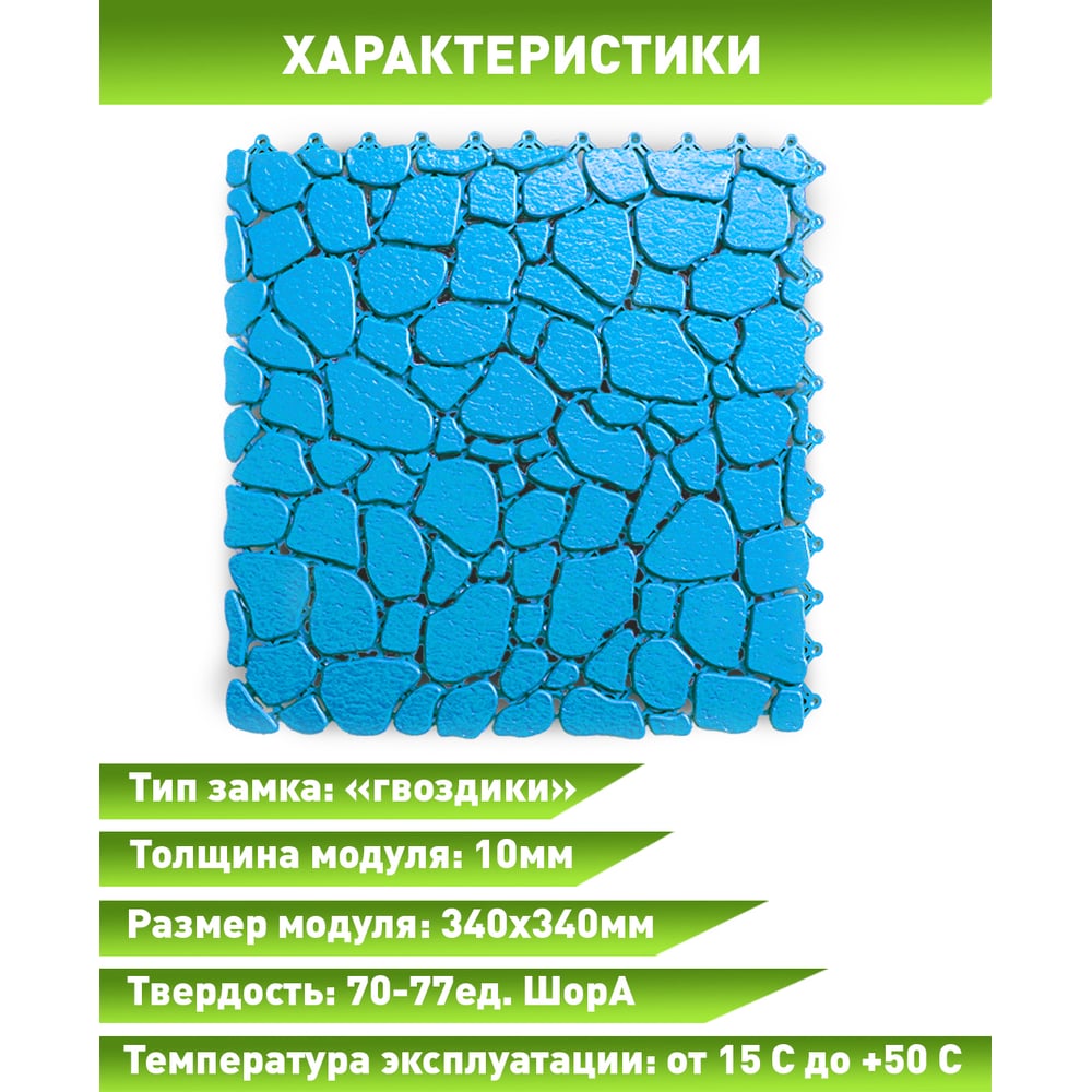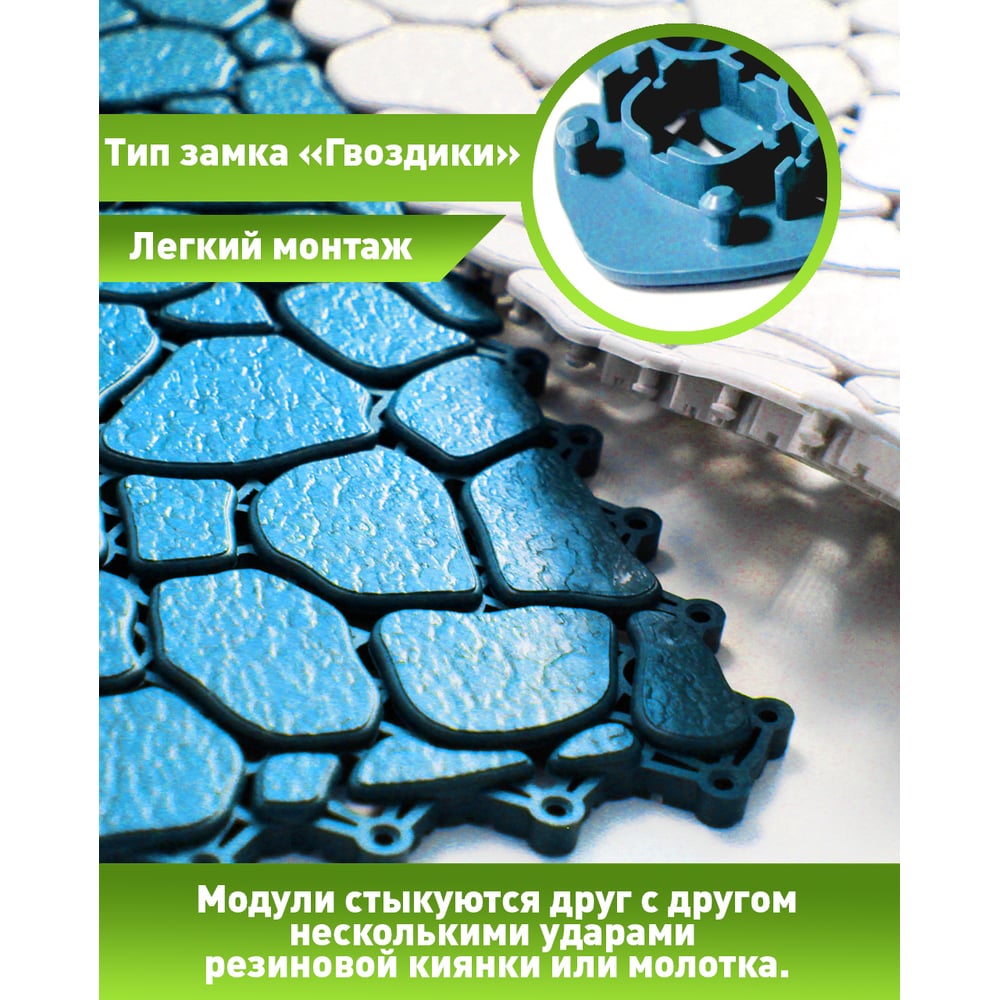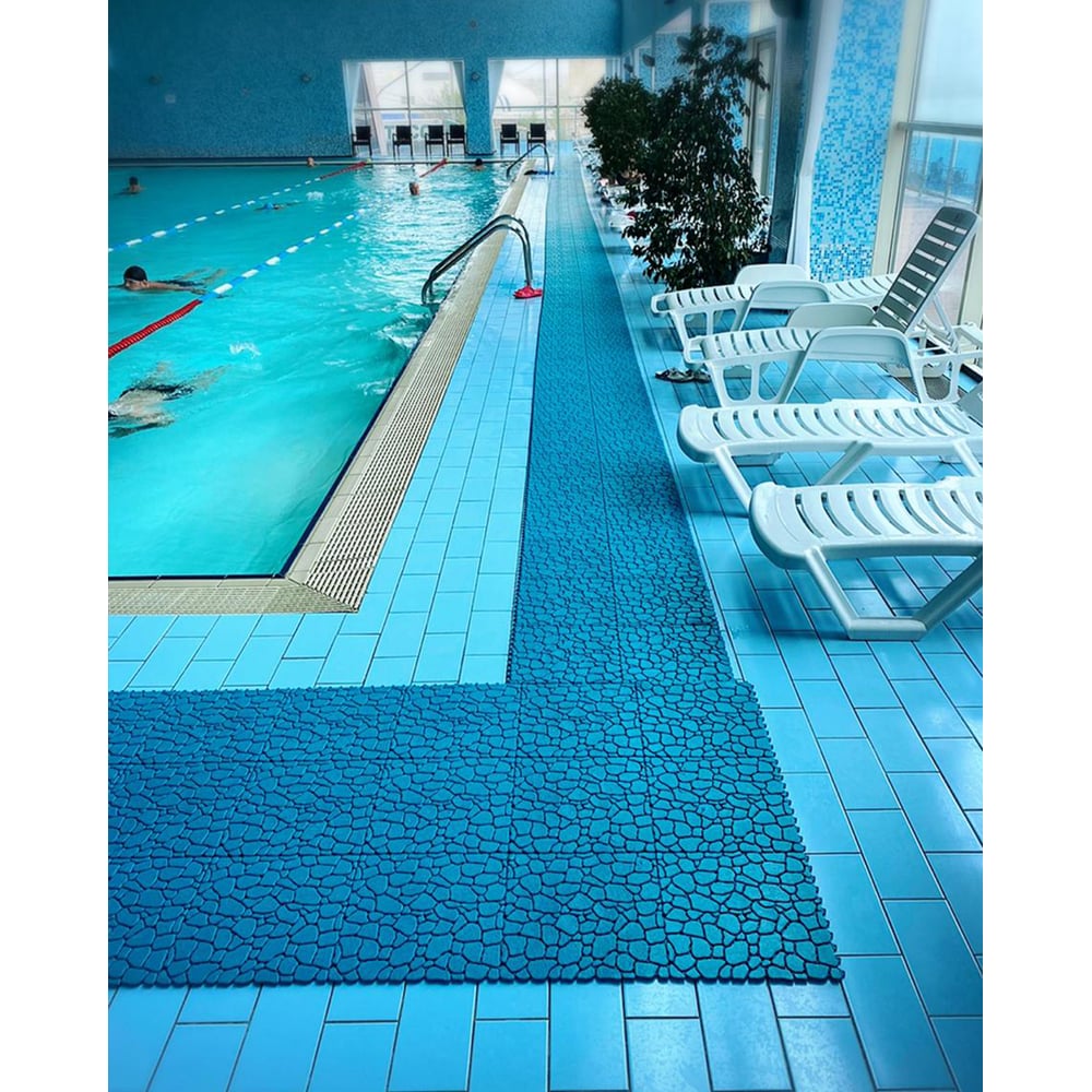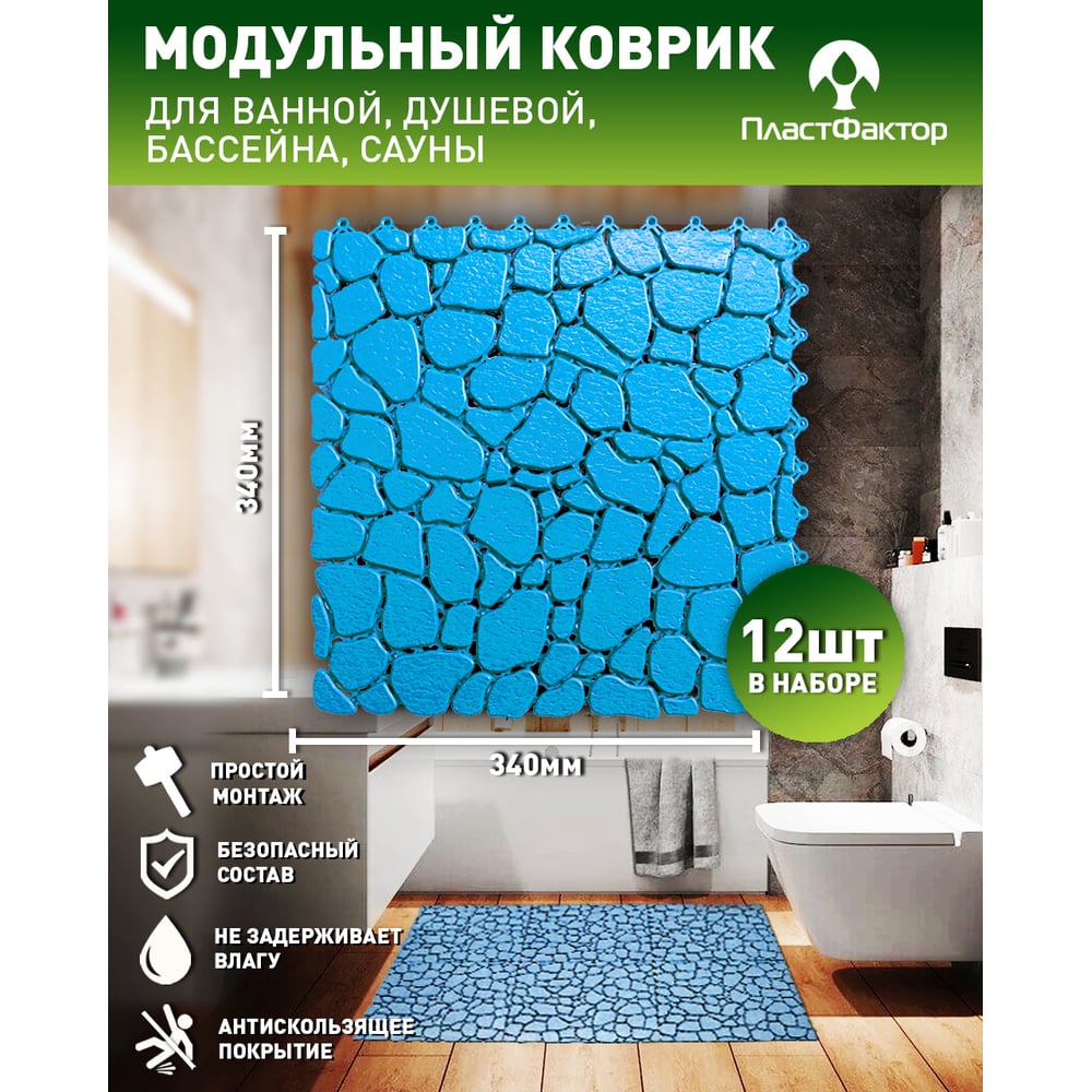 Антискользящий коврик для ванны, бассейна, сауны, бани ПластФактор Aqua Stone набор из 12 модулей, голубой 4630027111654