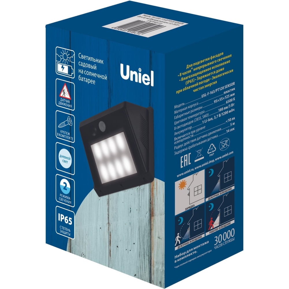 Садовый светильник на солнечной батарее Uniel, с датчиком движения USL-F-163/PT120 SENSOR UL-00003134