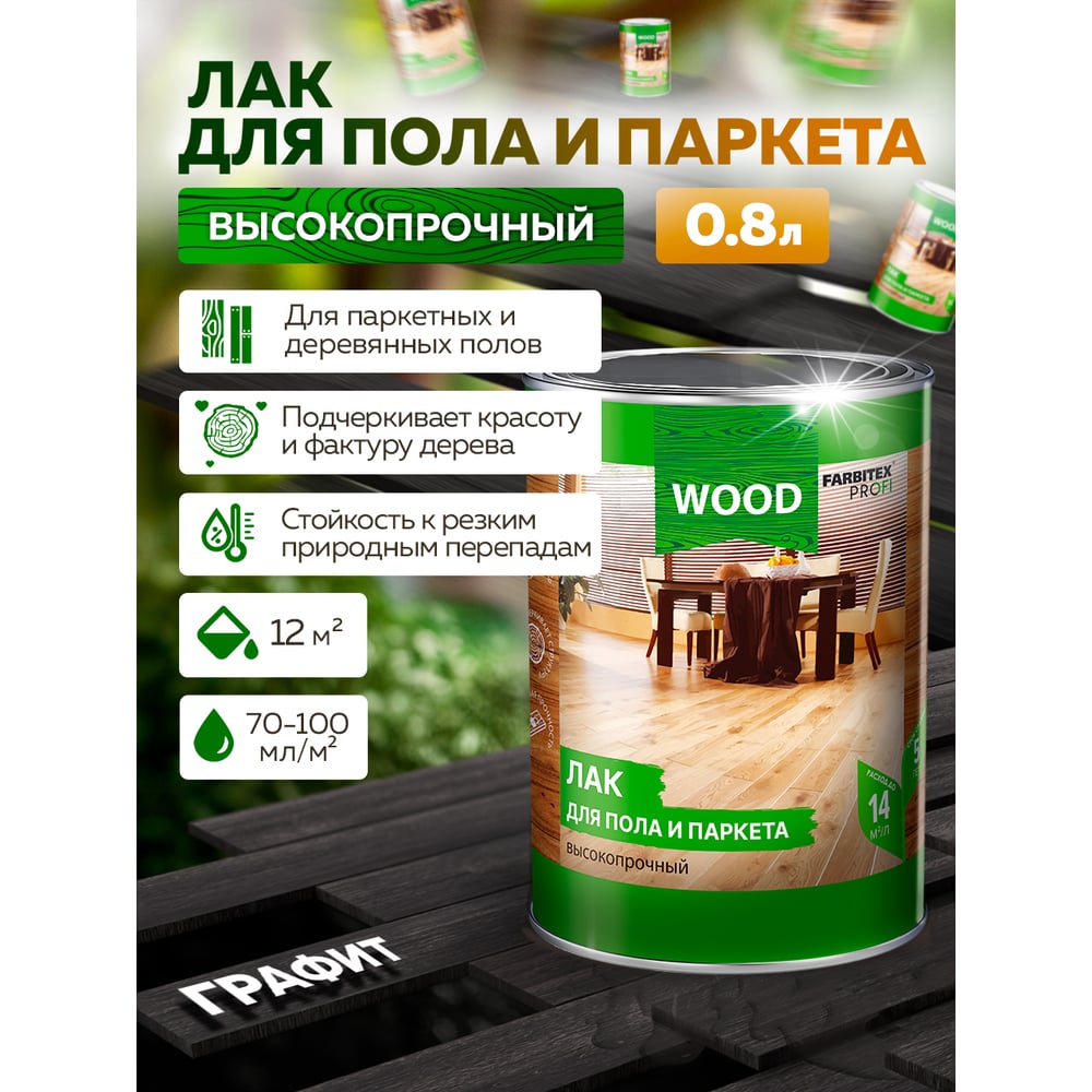 Лак для пола и паркета FARBITEX (высокопрочный; графит; 0.8 л) 4300009376