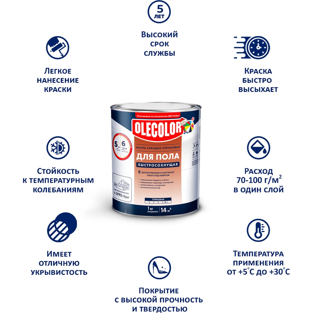 Алкидно-уретановая быстросохнущая эмаль для пола Olecolor 4300007480