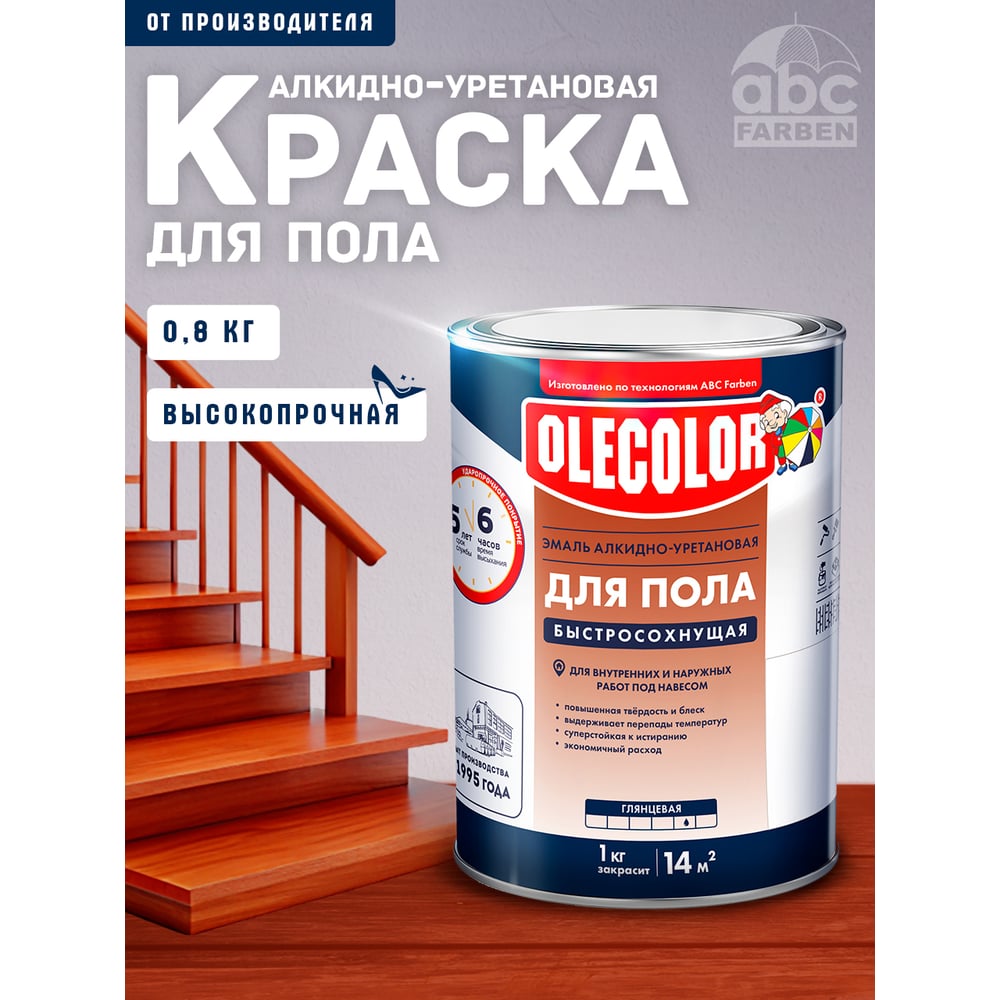 Эмаль для пола OLECOLOR алкидно-уретановая, быстросохнущая (6 часов), красно-коричневый 4300007477