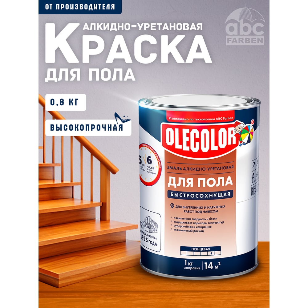 Алкидно-уретановая быстросохнущая эмаль для пола Olecolor 4300007479