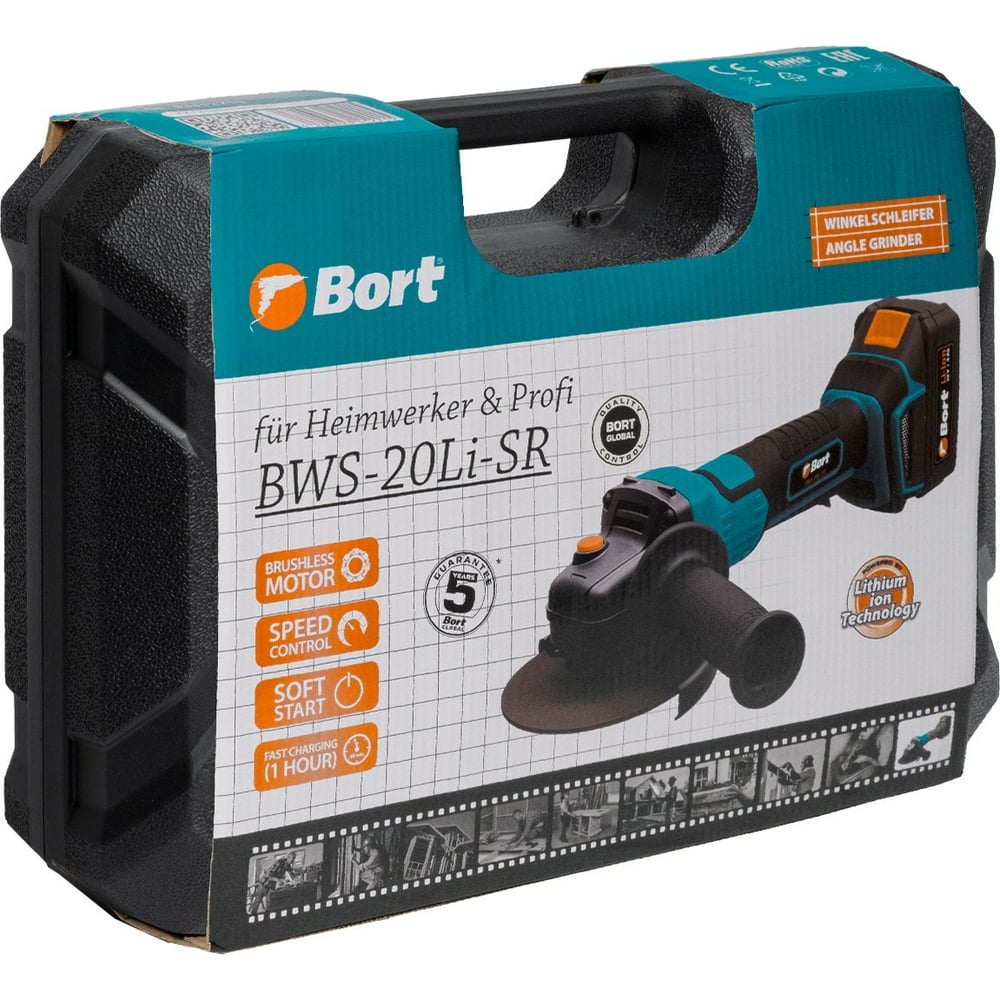 Аккумуляторная болгарка (ушм) BORT BWS-20Li-SR 93412215