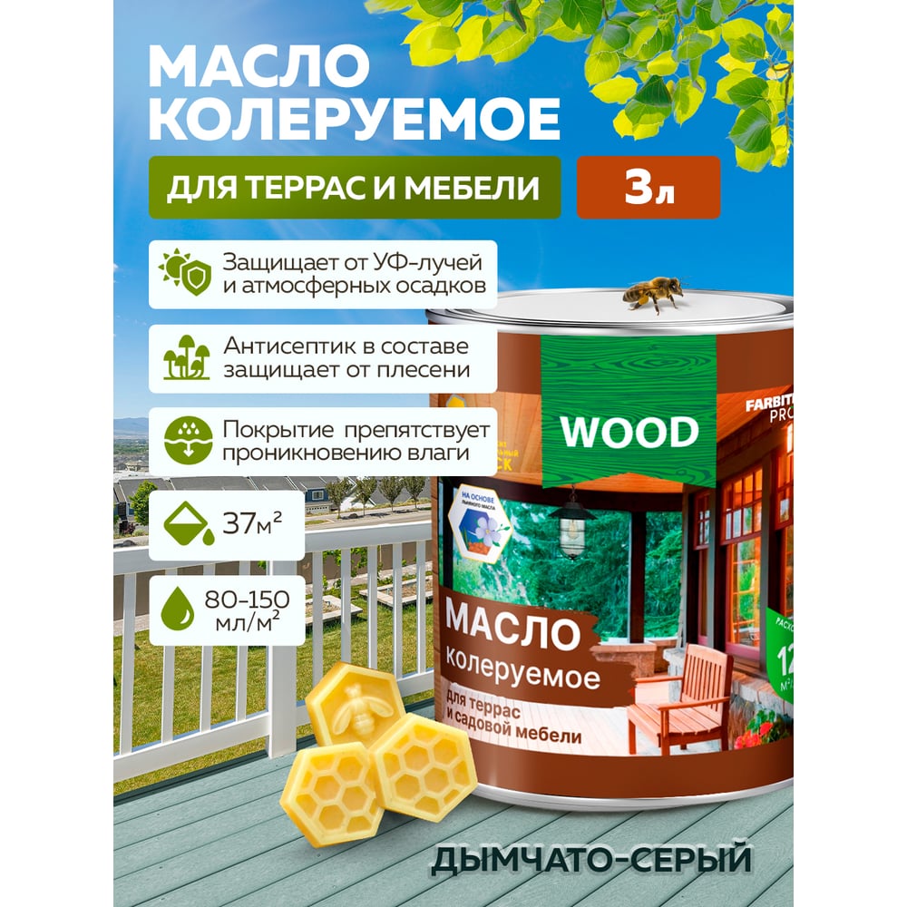 Колеруемое масло для террас и садовой мебели FARBITEX (дымчато-серый; 3 л) 4300009096