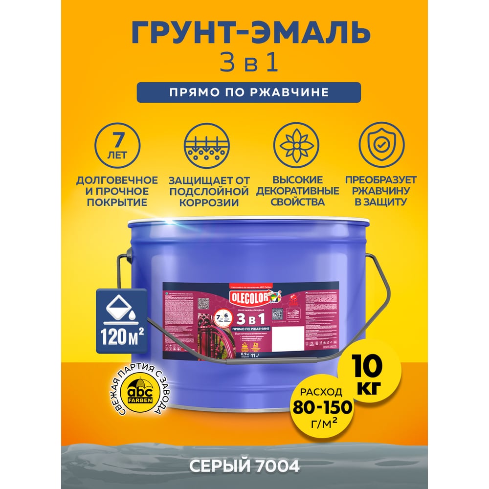 Грунт-эмаль по ржавчине Olecolor 3 в 1 серый 7004 (10 кг) 4300008962