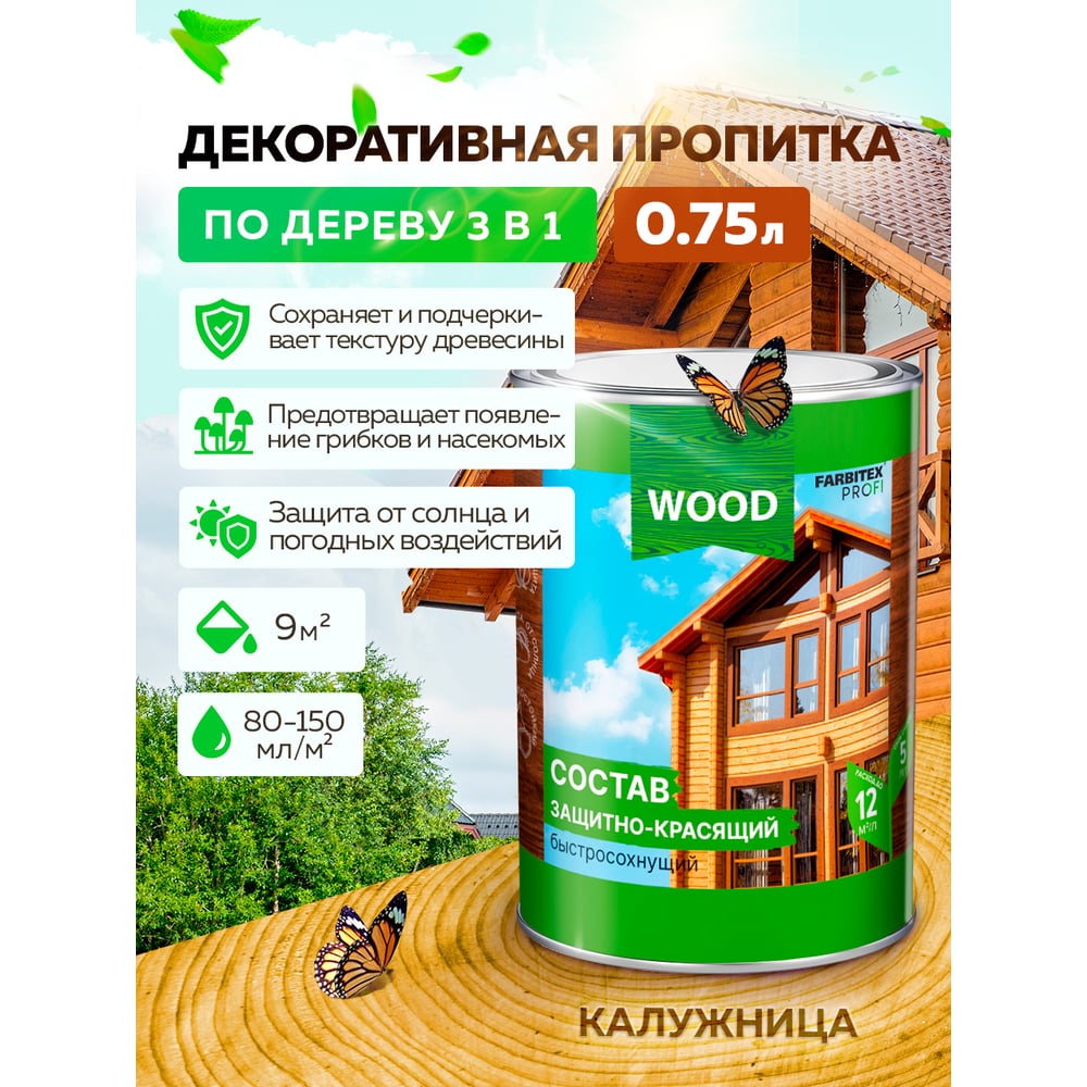 Быстросохнущий защитно-красящий состав для древесины Farbitex 4300008474