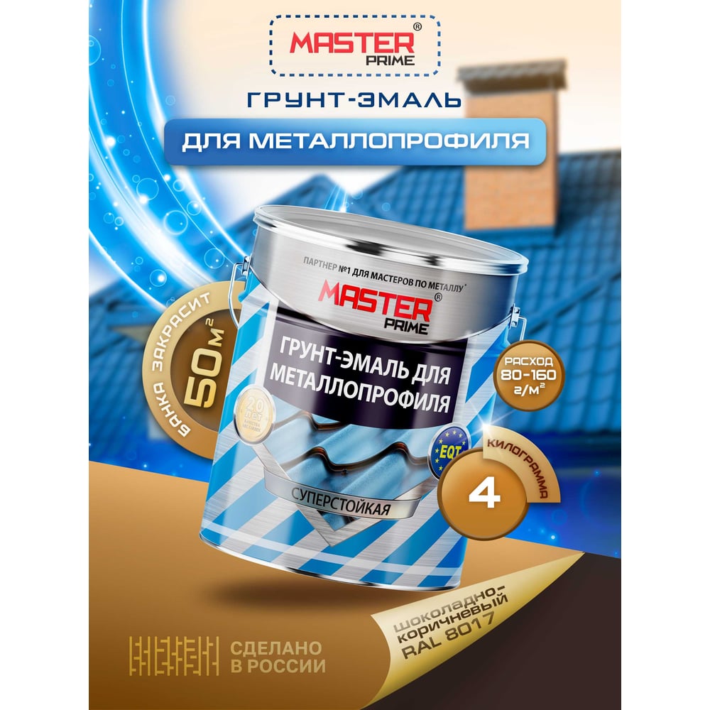 Грунт-эмаль Master Prime для металлопрофиля RAL 8017 шоколадно-коричневый, 4 кг 4300006950
