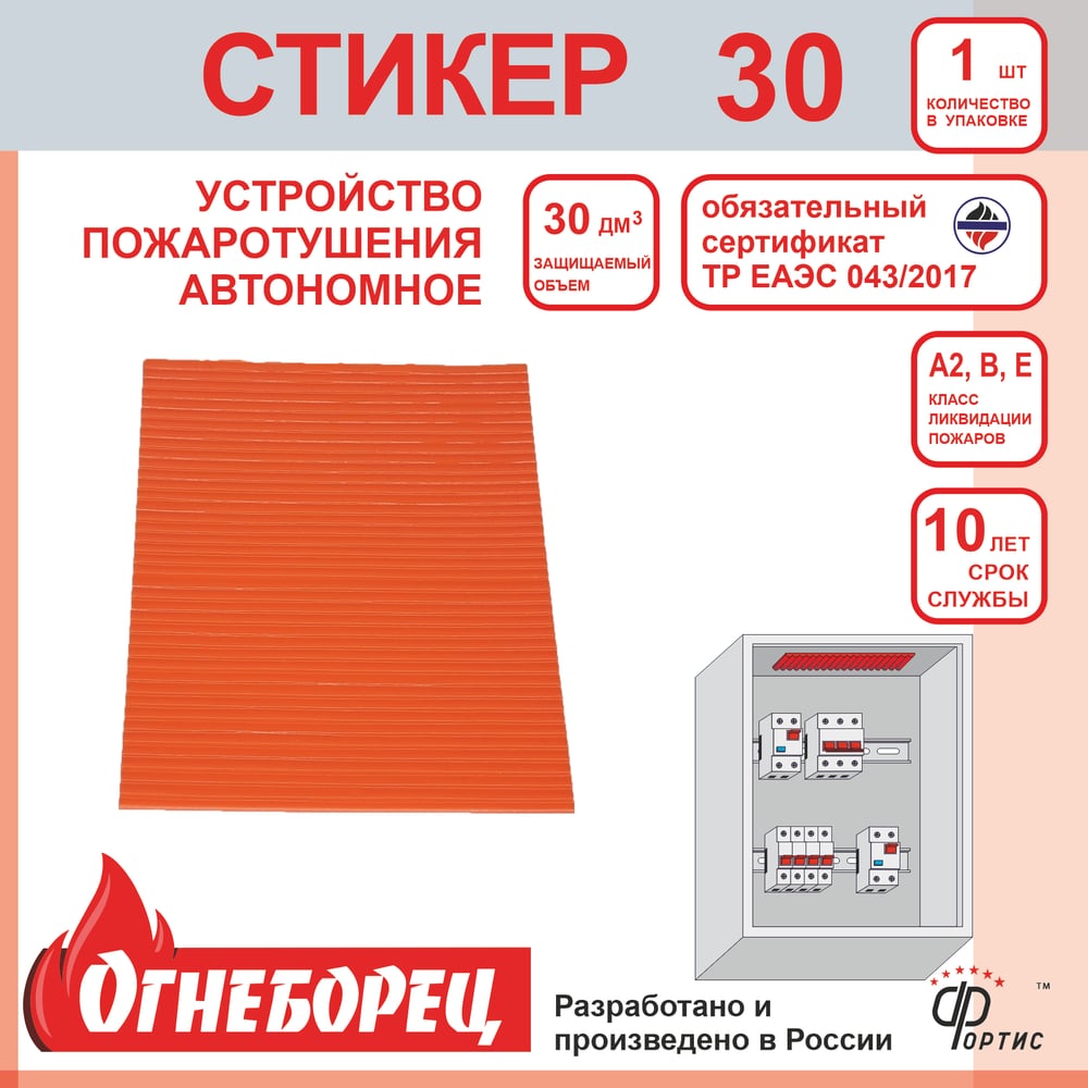 Габариты без упаковки 97×120×2,1 мм Вид пластина Класс пожара А2,В,С,Е Температура срабатывания 120 °С Защищаемый объем 30 л