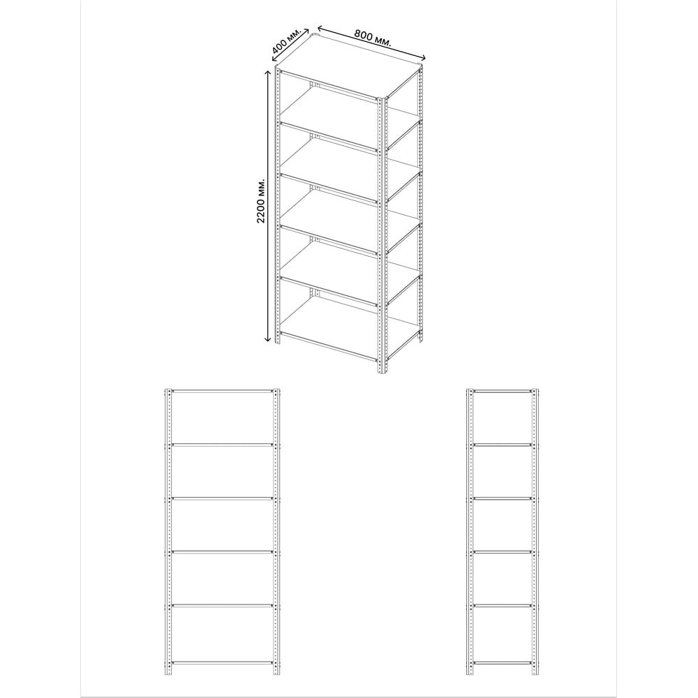 Габариты без упаковки 2200x800x400 мм Высота 2200 мм Материал сталь Покрытие порошковое Ширина 800 мм Цвет серый, зеленый Вид стеллаж Класс товара Бытовой Установка напольный Глубина 400 мм Конструкция стационарный Сборные нет Max нагрузка на полку 100 кг Кол-во полок/ярусов 6 шт Шаг регулирования высоты полки 25 мм Вес стеллажа 18.5 кг Безболтовые нет