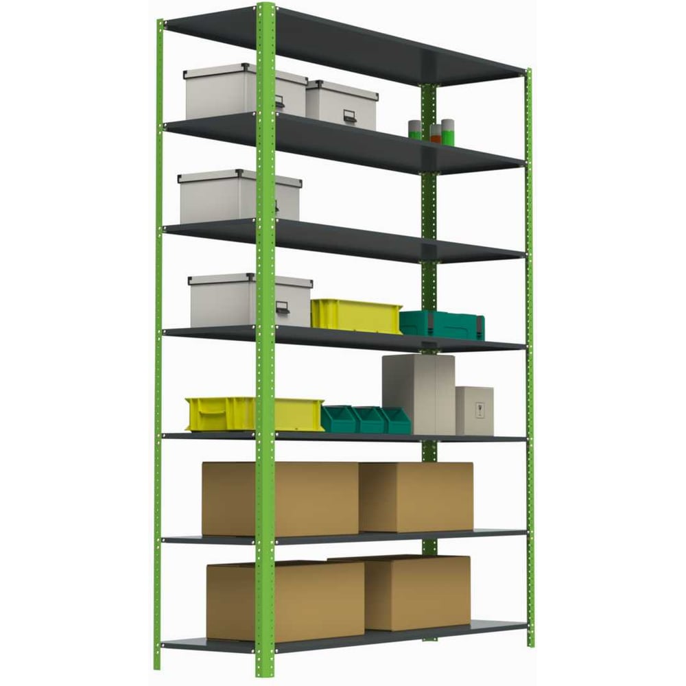 Габариты без упаковки 2200x1600x300 мм Высота 2200 мм Материал сталь Покрытие порошковое Ширина 1600 мм Цвет серый, зеленый Вид стеллаж Класс товара Бытовой Установка напольный Глубина 300 мм Конструкция стационарный Сборные нет Max нагрузка на полку 100 кг Кол-во полок/ярусов 7 шт Шаг регулирования высоты полки 25 мм Вес стеллажа 23.5 кг Безболтовые нет