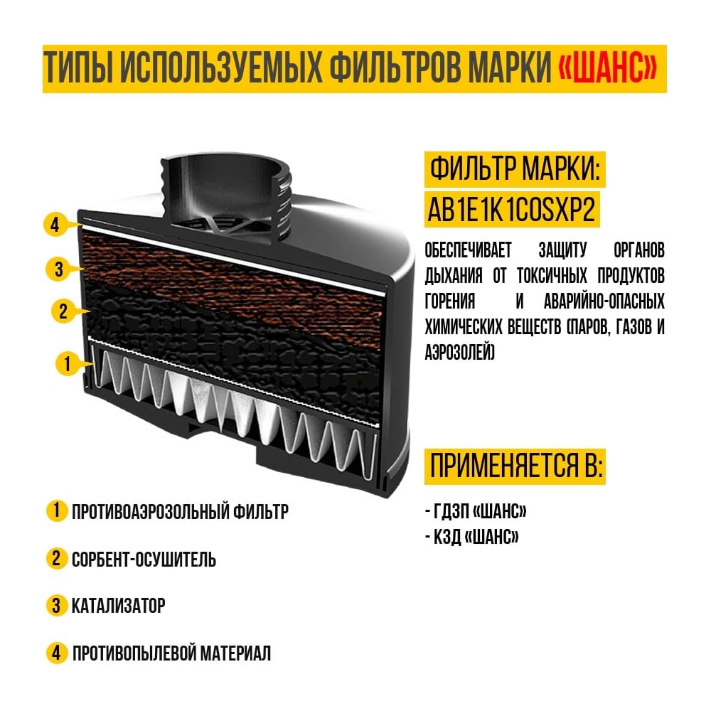 | Защитные свойства | от продуктов горения и химически опасных веществ |