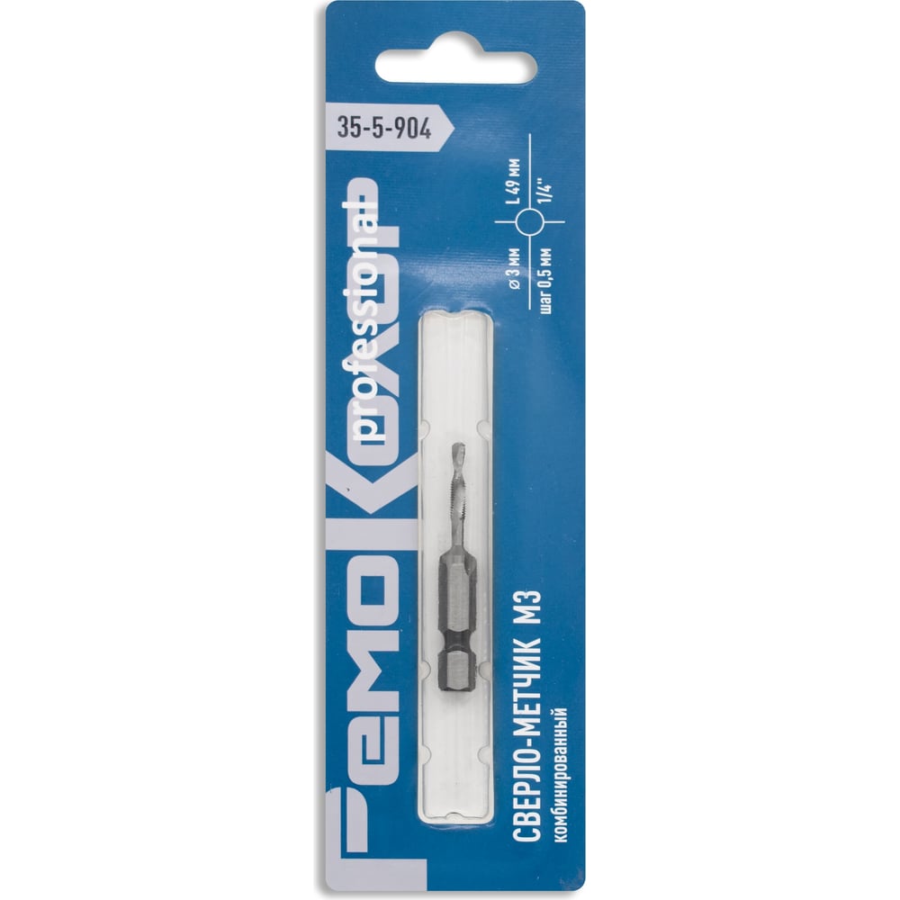 Сверло-метчик комбинированный М3, 3 мм, шаг 0.5 мм, длина 49 мм, хвостовик 1/4", РемоКолор 35-5-904