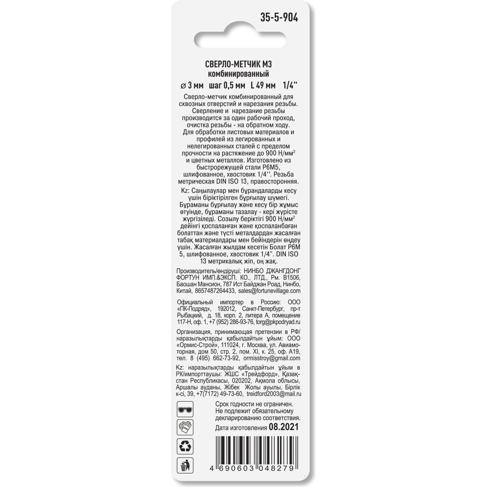 Комбинированное сверло-метчик РемоКолор 35-5-904