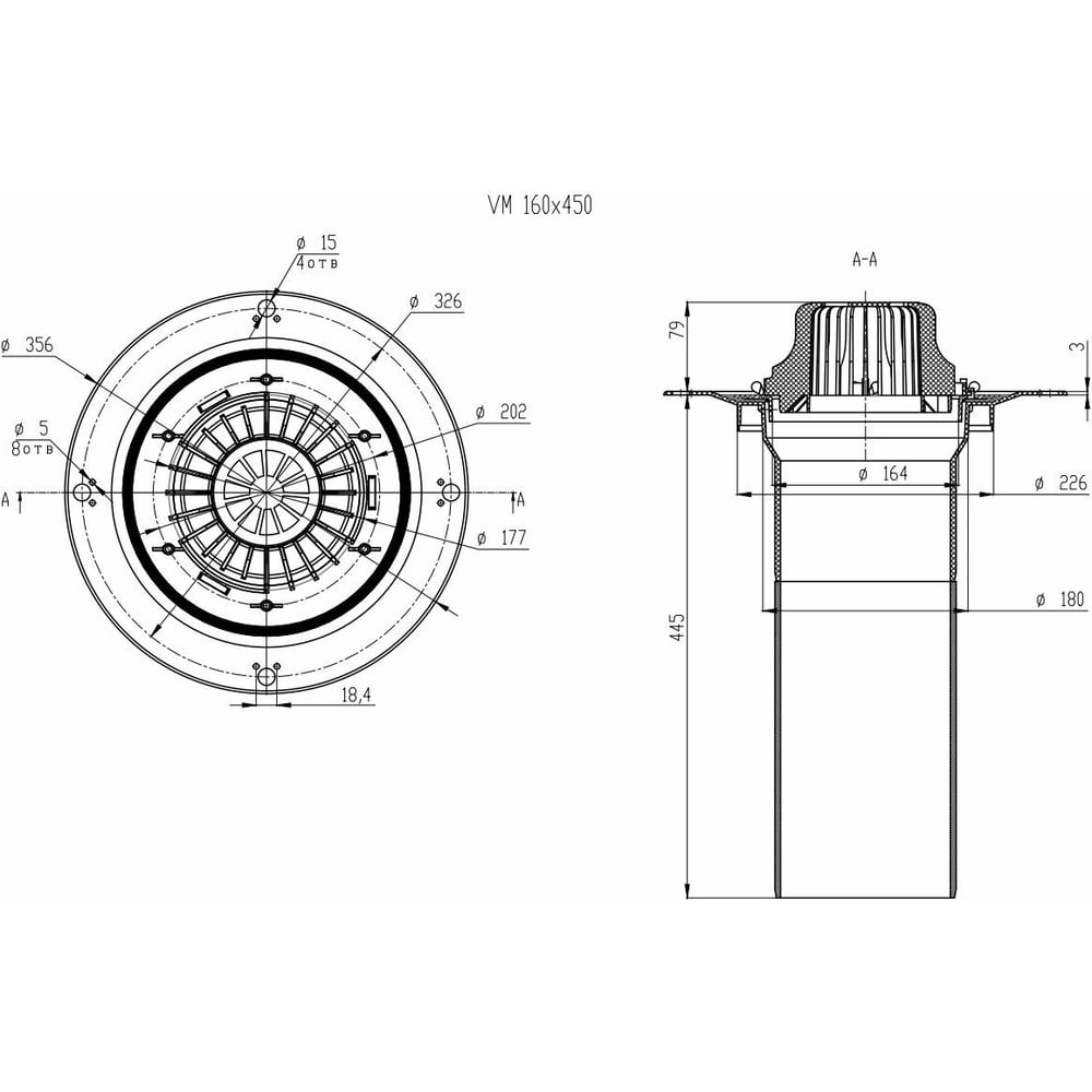 | Диаметр выпуска (отверстия для слива) | 160 мм |
