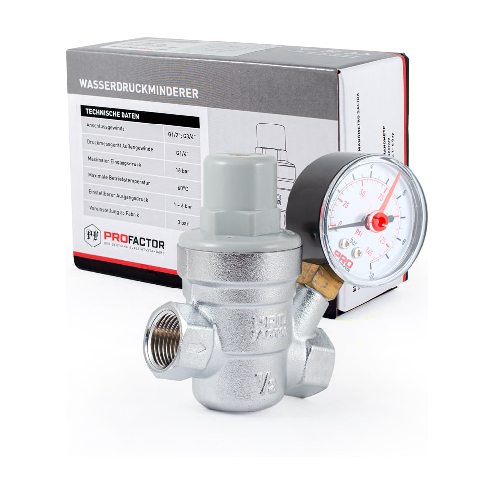 Редуктор давления PROFACTOR мембранный, с манометром, 1/2" PF PRV 253G