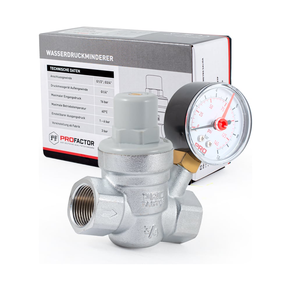 Редуктор давления PROFACTOR мембранный, с манометром, 3/4" PF PRV 254G