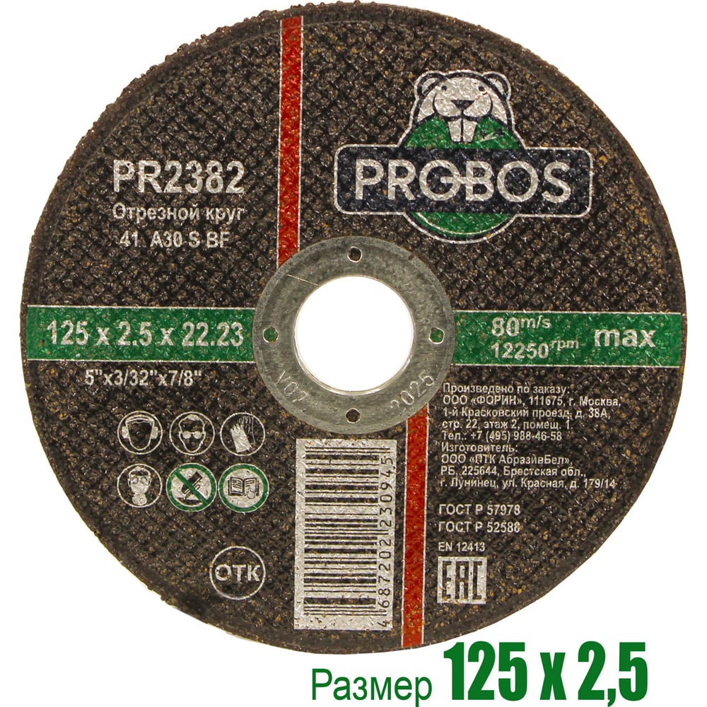 Круг отрезной абразивный 125x2.5x22.23 мм PROBOS PR2382