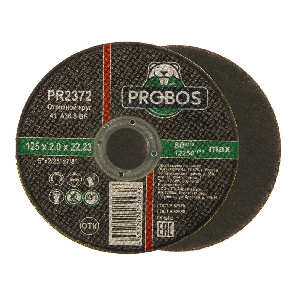 Круг отрезной абразивный 125x2.0x22.23 мм PROBOS PR2372