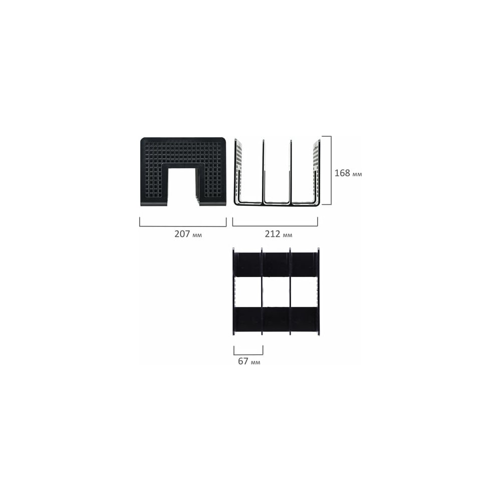 Лоток-сортер для бумаг BRAUBERG Office-Expert, 3 отделения, 207x212x168 мм, сетчатый, черный 238021