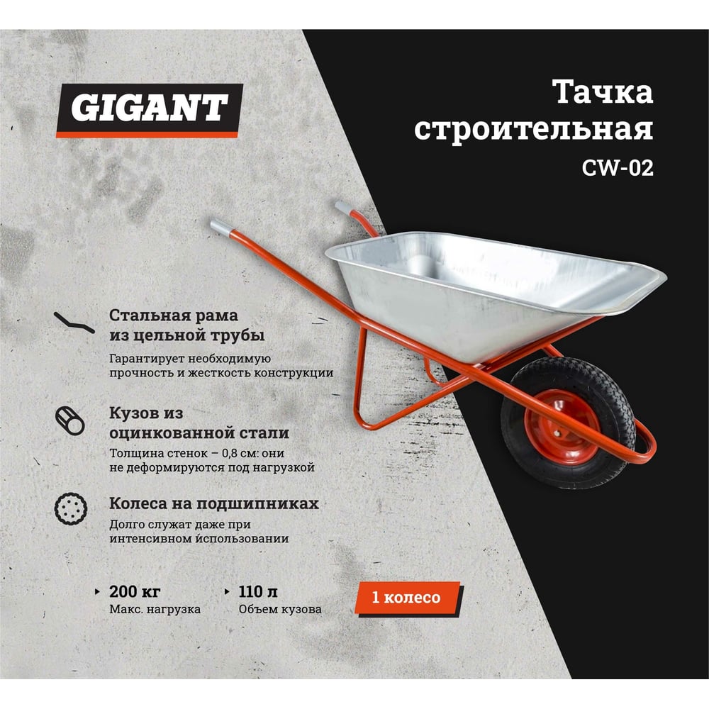 Строительная одноколесная тачка Gigant 200 кг, 110 л, CW-02