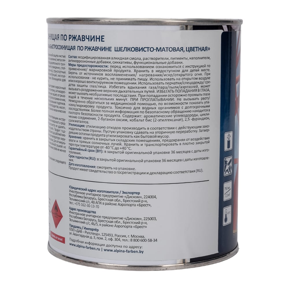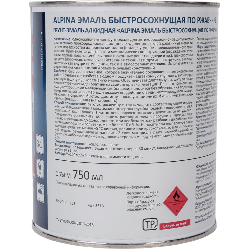 Быстросохнущая эмаль по ржавчине ALPINA 948104220