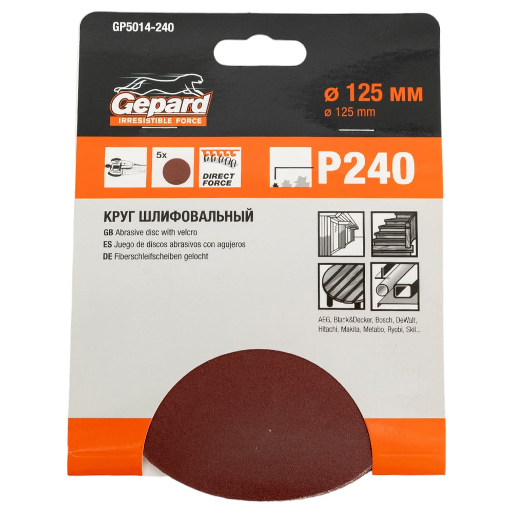 Шлифлист круглый самосцепляющийся 5 шт, 125 мм, Р240 Gepard GP5014-240