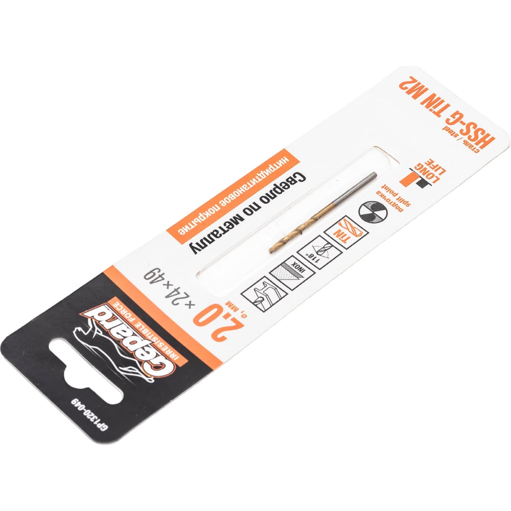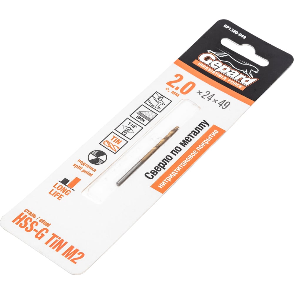 Сверло спиральное по металлу 2x24x49 мм, HSS TIN Gepard GP1320-049