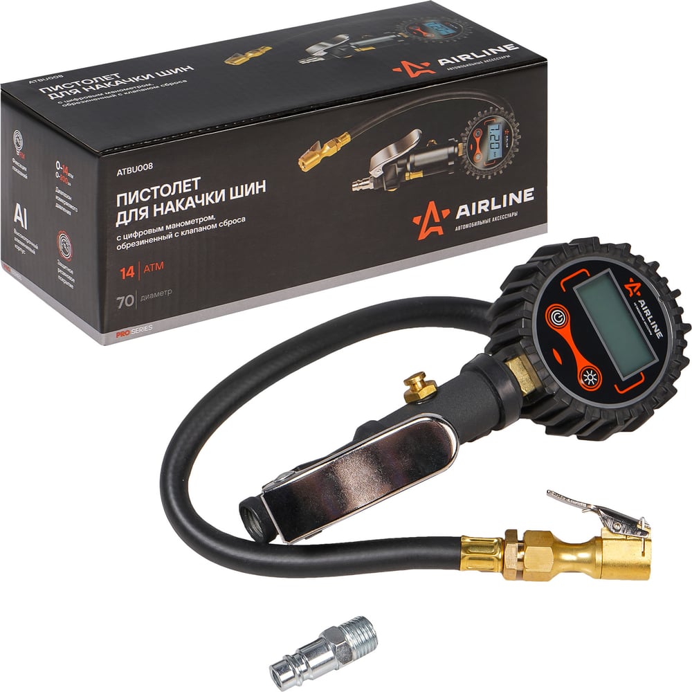 Пистолет для накачки шин с цифровым манометром Airline PRO 14BAR, с клапаном сброса ATBU008