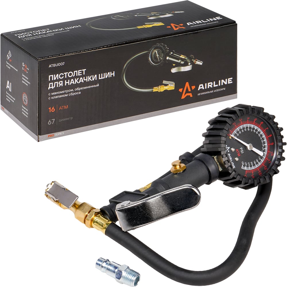 Пистолет для накачки шин с манометром Airline PRO 16АТМ, с клапаном сброса ATBU007