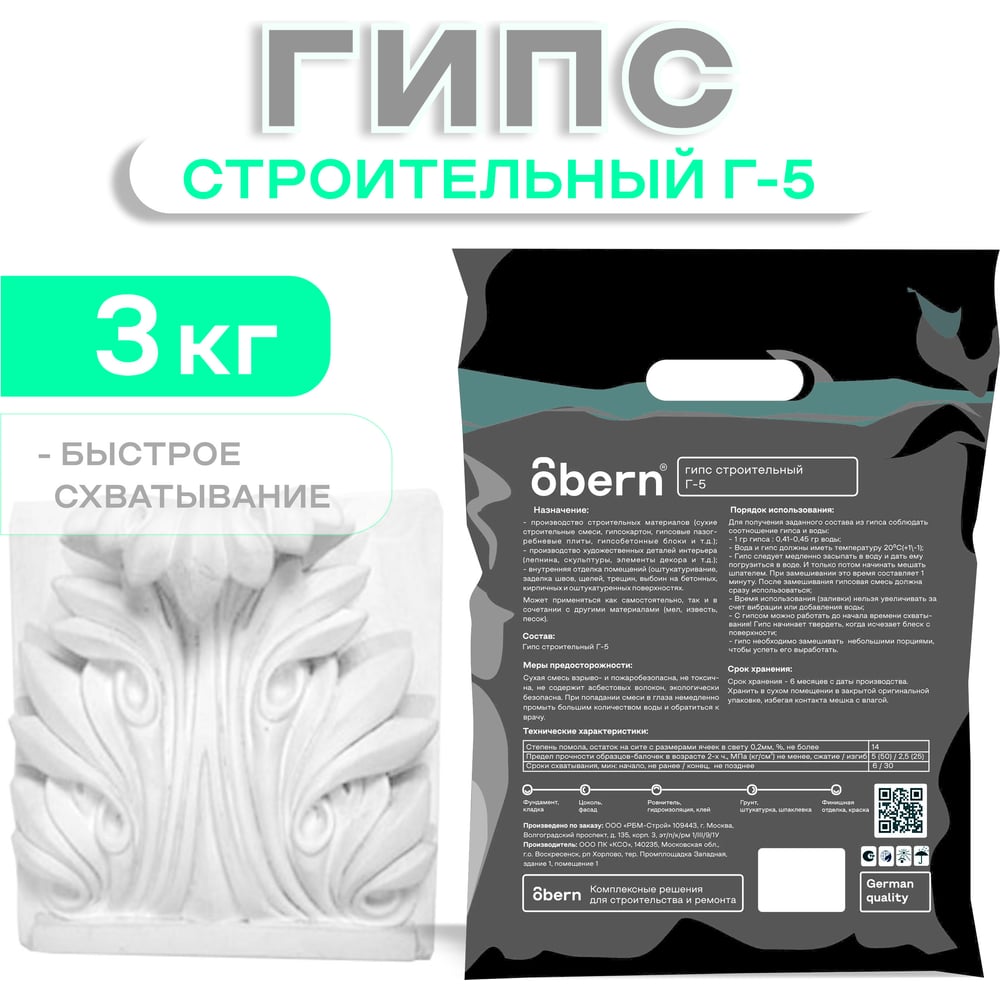 Гипс Obern белый 3 кг 24061