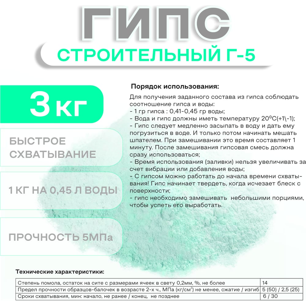 | Расход воды на 1 кг порошка | 0.6 л |