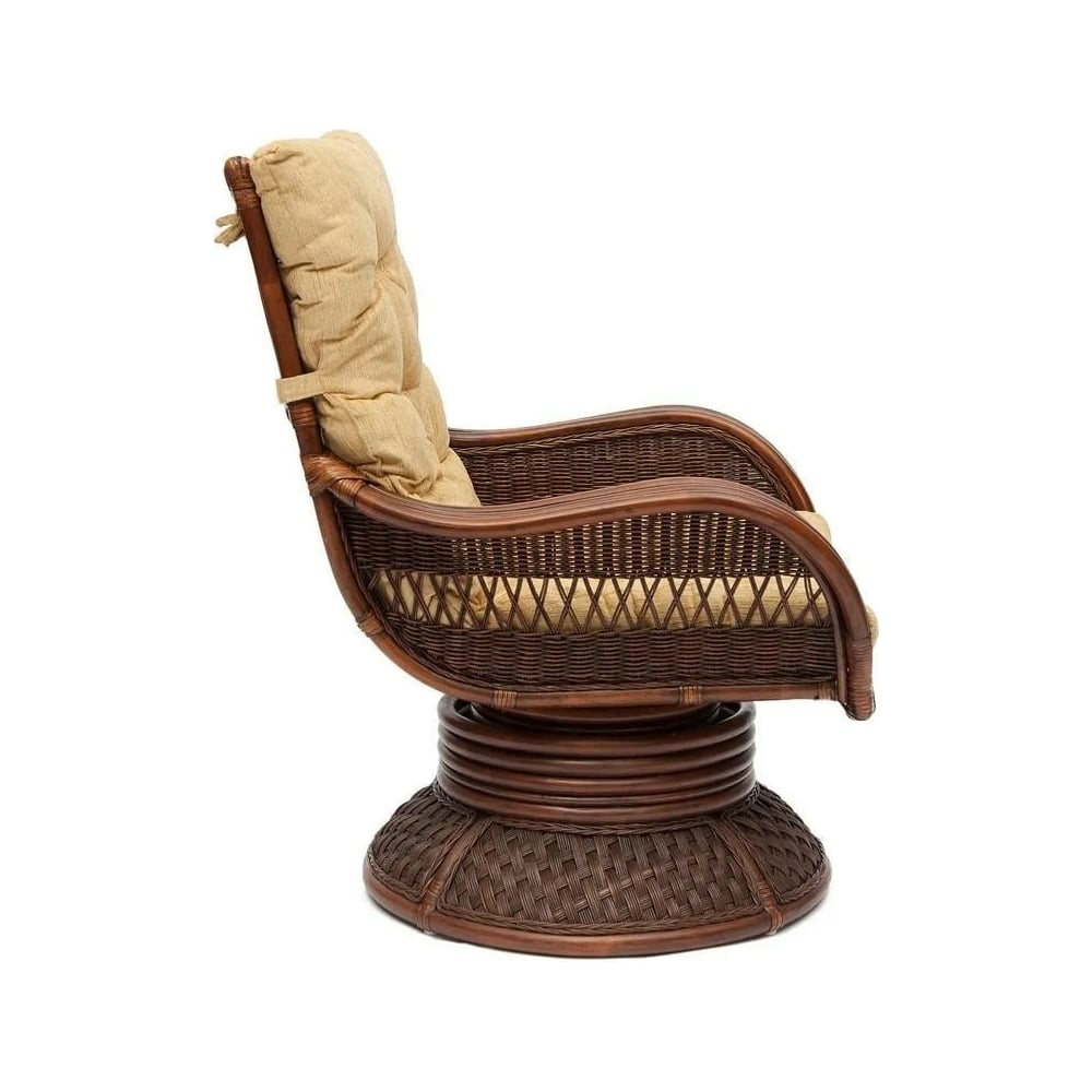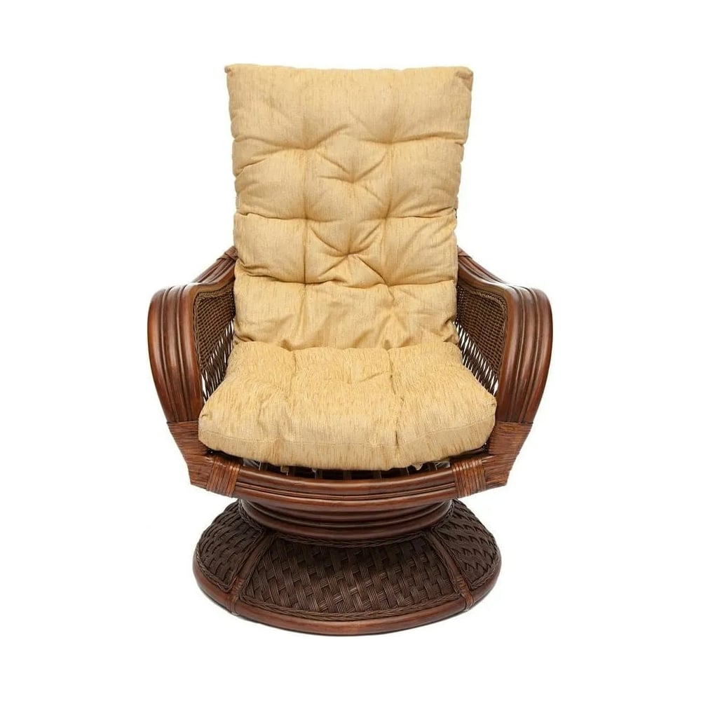 Габариты без упаковки 1100х1000х600 мм Покрытие лак Вес нетто 15 кг Материал корпуса натуральный ротанг Цвет корпуса орех Max нагрузка 120 кг Цвет сиденья кремовый Водонепроницаемость нет Флокированный слой нет Материал сиденья ткань