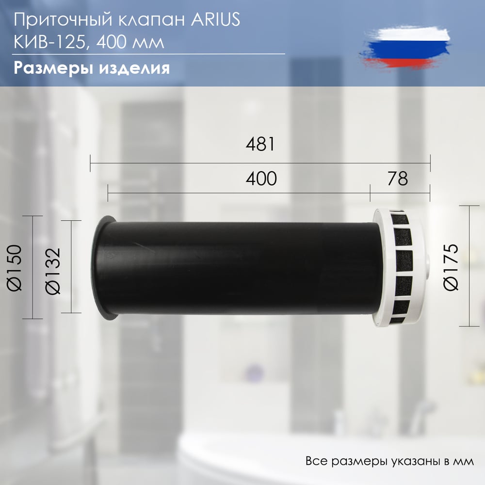 Приточный клапан ARIUS КИВ-125 400 мм, с теплошумоизоляцией и круглой наружной металлической решеткой 24001КИВ