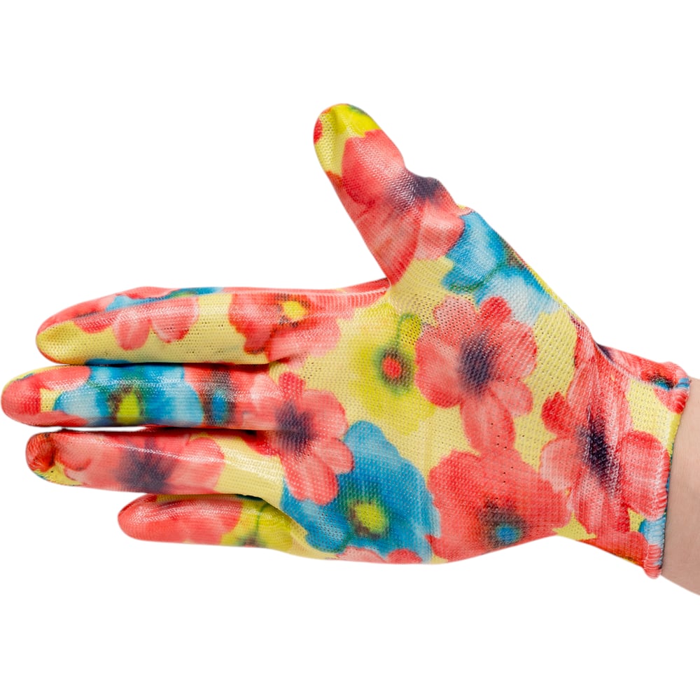 Садовые перчатки СПЕЦ Garden Flowers полиэстер, с прозрачным нитриловым покрытием, р. S/7 GF-PN-03S