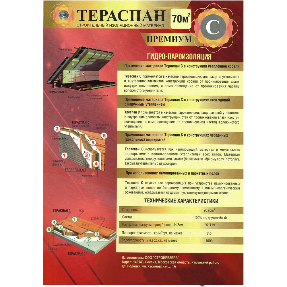 Паро-гидроизоляционный материал ТЕРАСПАН С ПРЕМИУМ 70 кв. м 4660077150419