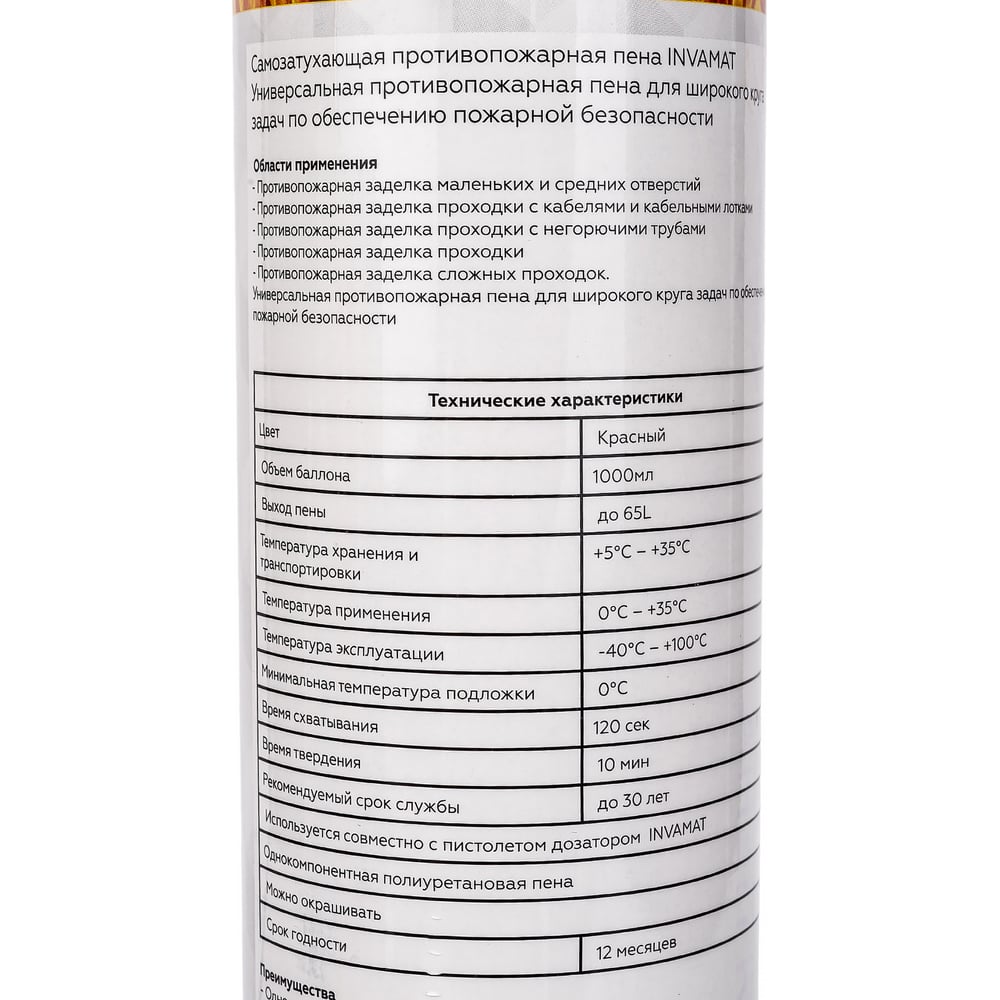 Монтажная пена INVAMAT 65 противопожарная, огнестойкая, 1000 мл 1015