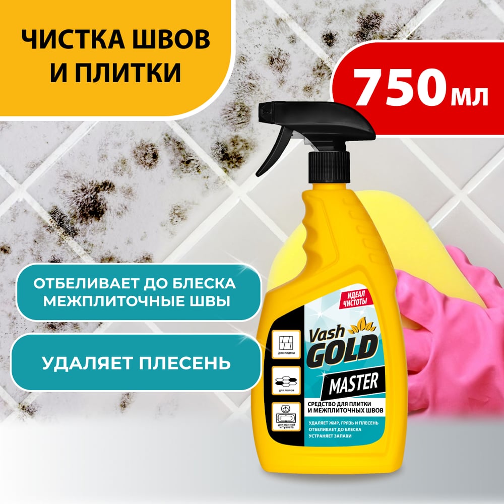 Средство для плитки и межплиточных швов VASH GOLD Master 750 мл., спрей 307802