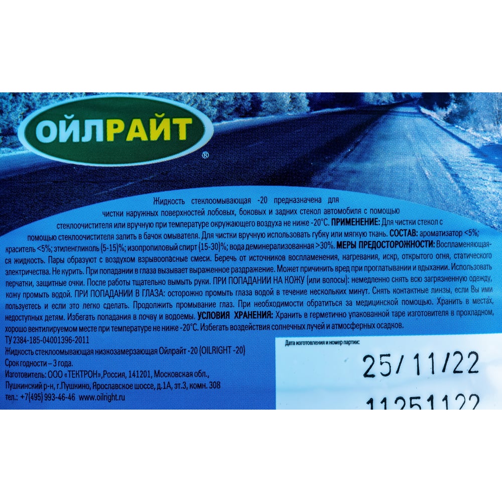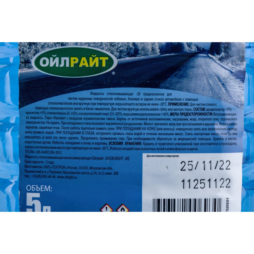 Омыватель стекол OILRIGHT зимний, -20 С, пэт 5 л 5205
