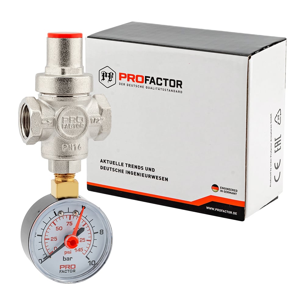 Редуктор давления PROFACTOR поршневой, c манометром 1/2" PF PRV 251.15G