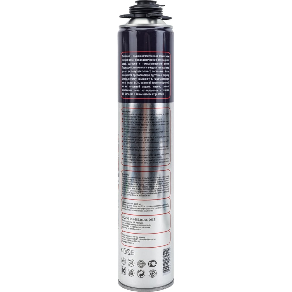 | Объем пены в баллоне (выход) | 65 л |