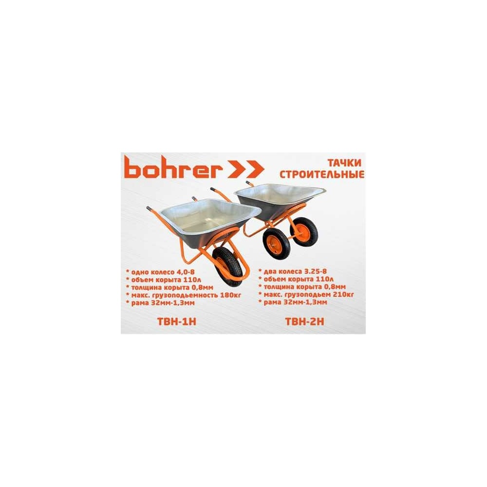 Строительная двухколесная тачка Bohrer колесо 3.25-8, 110 л, 210 кг ТВН-2Н