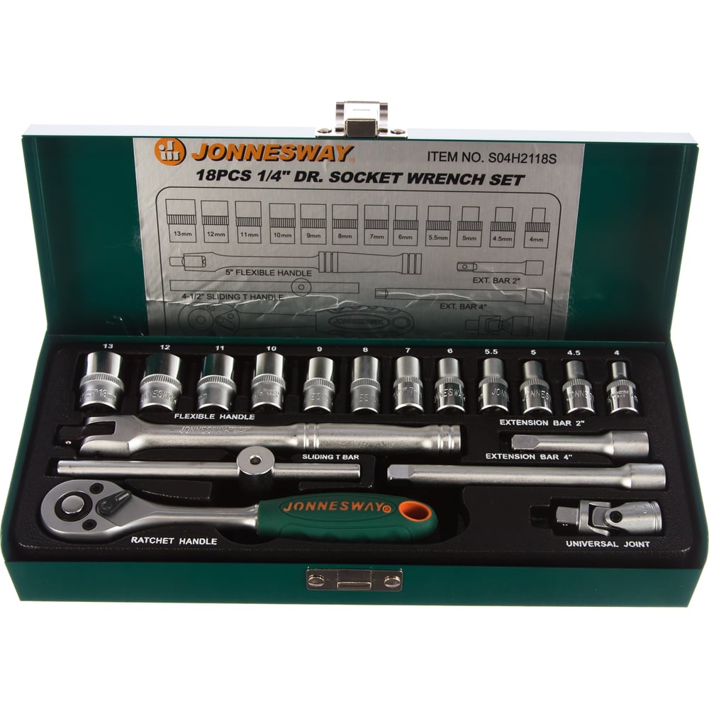 Набор торцевых головок 18 предметов Jonnesway S04H2118S