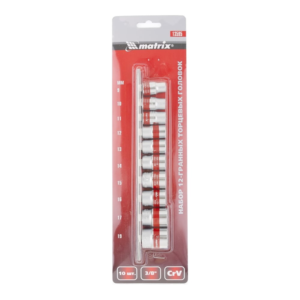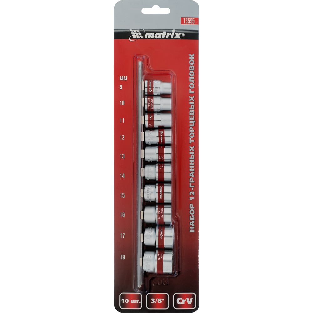 Набор торцевых головок (12-гранные; 3/8"; 9-19 мм; 10 шт.) MATRIX 13595