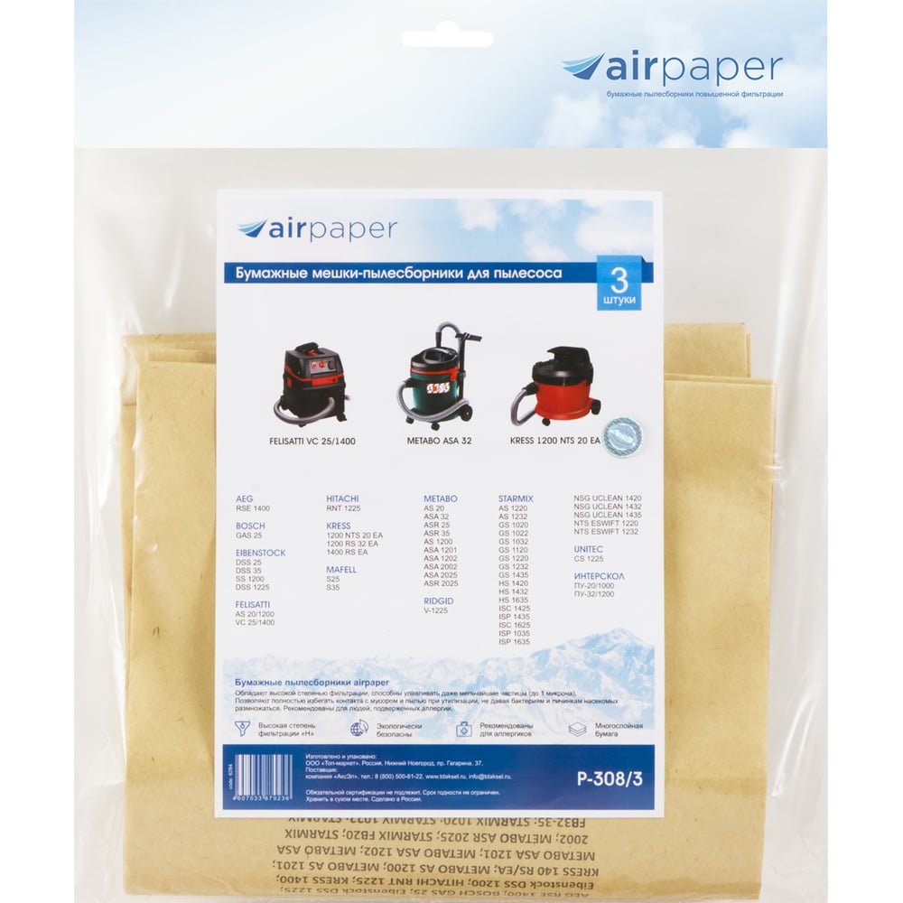 | Модель мешка | 308 |