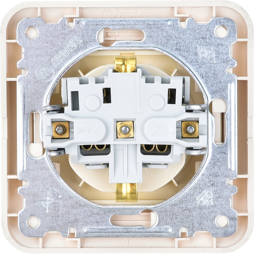 Розетка с заземлением, кремовая Makel Mimoza 25028